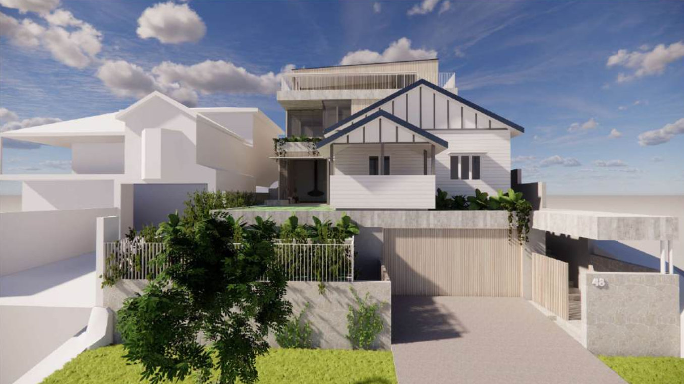 Utilising the natural fall of the site, Cochrane sees the retention of the site’s 2 bedroom pre-1947 Dwelling and extends it to the rear to create a partial 3 storey, 4 bedroom family home with a 5 car basement garage, roof terrace and pool with city skyline views from every level.