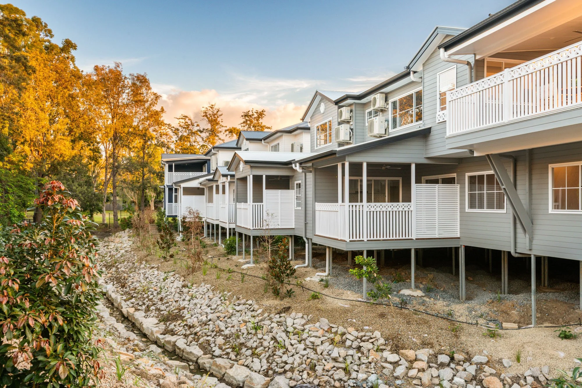 This $15 million development sees an existing 5,700m2 Low density residential zoned site be redeveloped for 13 x two-storey Hampton-style townhouses and a three-storey mixed use complex comprising ground floor food and retail and 6 x 3-bedroom above-ground apartments. With its high quality architectural treatments, finishes and landscaping, the project complements and enhances the surrounding Leicester St & Martha St precinct.